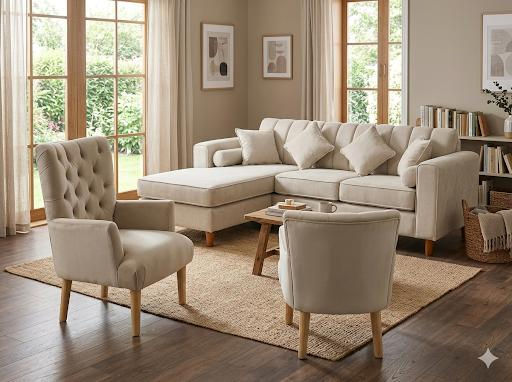 Sofá Seccional Modular Loft Tela 4 cuerpos Beige